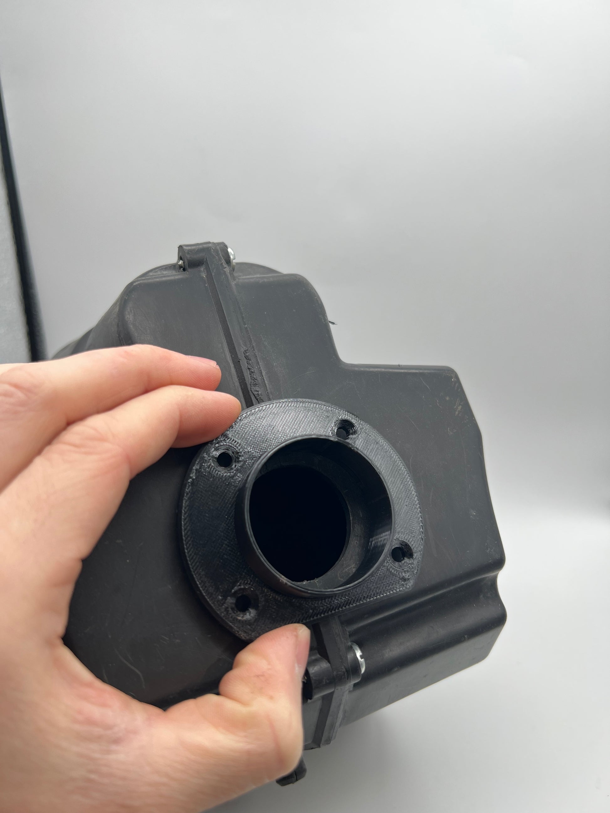 - Ansaugstutzen mittig auf das originale loch auflegen und innere umrisse des Stutzen auf den Kasten übertragen.